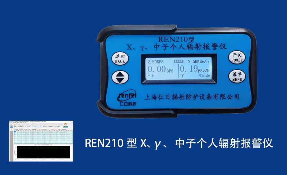 REN210 個人劑量報警儀REN210型X、γ、中子個人輻射報警儀內(nèi)置SiPM和鋰玻璃晶體組成中子探測器儀器,采用反照率方式探測中子射線,同時也能探測X、γ射線。因此它可同事監(jiān)檢測X、γ、中子三種射線。能顯示工作場所的劑量當(dāng)量率和累積劑量,更換電池時,日期及累積數(shù)據(jù)能永久保存。可選配RenRiPersonal個人劑量管理軟件,該軟件可存儲多個人的歷史數(shù)據(jù),能記錄日累積、月累積、年累積、輻照時長、計算平均劑量率、扣除或不扣除本底輻射,且以文字和圖譜的方式展現(xiàn)數(shù)據(jù)。廣泛應(yīng)用于環(huán)保、化工、水泥、煤礦、土木工程、石油、醫(yī)院、疾控、進(jìn)出口商檢、核電、加速器、機(jī)場、中子源庫和其他安檢、邊境控制海關(guān)檢測等